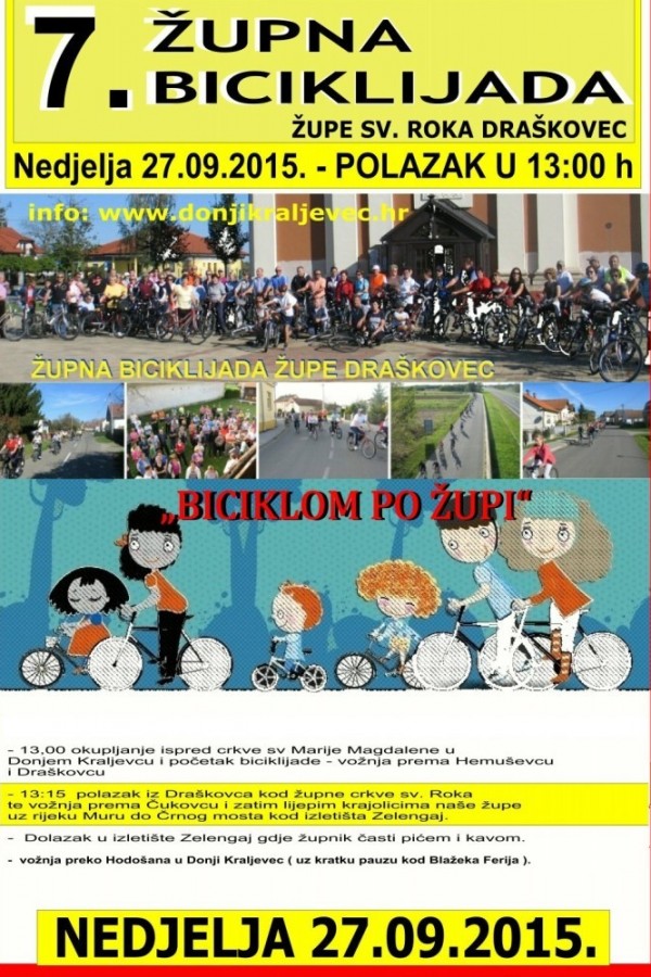 -13,00 okupljanje ispred crkve sv.Marije Magdalene u Donjem Kraljevcu i početak bicikliranja prema Hemuševcu i Draškovcu.