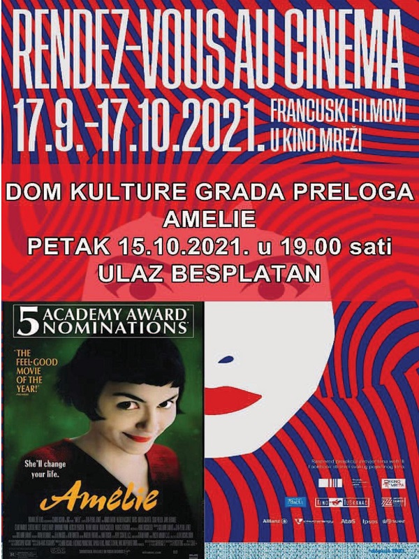 Već tradicionalno u suradnji s Hrvatskim audiovizualnim centrom, Kino mrežom i Francuskim institutom, u nezavisnim kinima širom Hrvatske, tijekom rujna i listopada, prikazuju se francuski filmovi u programu nazvanom Rendez-vous au cinéma. U program se uključuju brojna kina širom Hrvatske projekcijama odabranih klasičnih i suvremenih naslova francuske filmske produkcije kojima se pokušava filmoljupcima približiti tu veliku europsku kinematografiju. Programu Rendez-vous au cinéma, priključuje i Dom kulture Grada Preloga. Tako će se svakoga petka u Domu kulture Grada Preloga moći pogledati neki od filmova iz francuske kinematografije. Nakon filmova „Osam žena“ i „Avantura na sjeveru“, u petak 15. listopada, s početkom u 19,00 sati, prikazat će se film „Amélie“. Ulaz je besplatan.