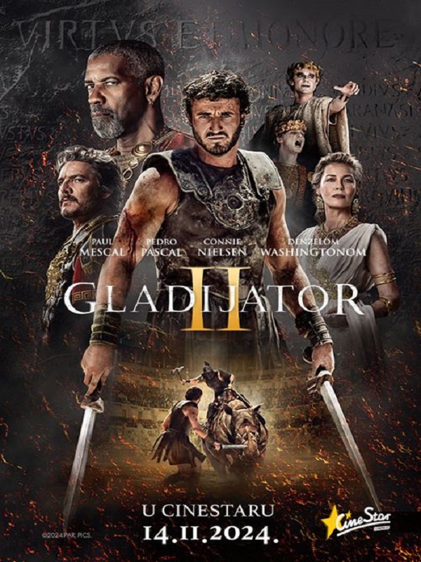 GLADIATOR II – 19 SATI (SUBOTA I NEDJELJA)