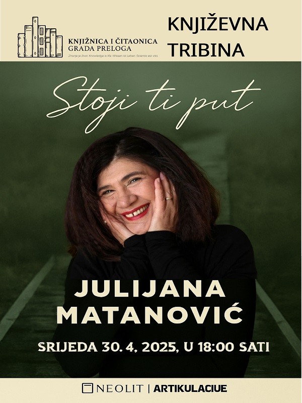 U srijedu 30. travnja 2025. godine s početkom u 18:00 sati, održat će se književni susret s Julijanom Matanović, jednom od najistaknutijih hrvatskih književnica čija djela redovito nalaze put do srca čitatelja. Povod susretu je predstavljanje njezina najnovijeg romana Stoji ti put (Neolit, 2024.), knjige koja snažno progovara o nasljeđu ženskih priča, nepravdama i unutarnjoj snazi. Kroz likove triju žena – bake, majke i kćeri – Matanović u ovom djelu otkriva slojevite sudbine oblikovane društvenim očekivanjima i obiteljskim povijestima. Riječ je o romanu koji ne ostavlja ravnodušnim, pisanom iz osobnog iskustva i duboke potrebe za razračunavanjem s nepravdama koje žene tiho trpe.