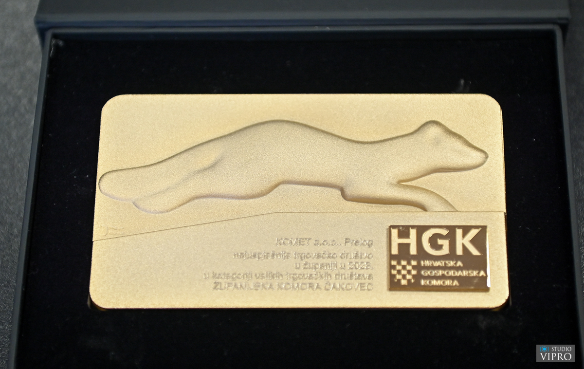 Hrvatska gospodarska komora Županijska komora Čakovec dodijelila je, u petak 27. rujna, plakete Zlatna kuna najuspješnijim međimurskim tvrtkama u 2023. godini. Nagrade su dodijeljene u sklopu svečane sjednice Gospodarskog vijeća Hrvatske gospodarske komore – Županijske komore Čakovec. Među nagrađenima našla se i tvrtka Komet d.o.o. iz Preloga, u kategoriji velikih trgovačkih društva, kojima je to četvrta plaketa Zlatna kuna za njihovo uspješno poslovanje. Nagradu je primio direktor tvrtke Komet d.o.o. Dražen Sinko, koji je posebno istaknuo vrijednost radnika, a pogotovo činjenicu da veliki broj zaposlenih provodi cijeli svoj radni vijek u tvrtki Komet d.o.o. „Komet“ d.o.o. je osnovan 1992. i bavi se proizvodnjom transformatorskih kotlova, metalnih konstrukcija, pocinčanih gazišta, strojeva za obradu granita i mramora, cjevovoda, metalnih kalupa, izmjenjivača topline, prigušivača zvuka, iskrohvatača, rezervoara za gorivo i dr. Poduzeće se prostire na 49 000 m² prostora od čega 20 000 m² proizvodnih prostora. Vlasništvo je 100% privatno. Komet d.o.o. zapošljava oko 270 radnika. Velika pažnja posvećuje se razvoju, kupovini suvremene opreme i izgradnji proizvodnih objekata, sve u cilju povećanja kvalitete, produktivnosti i plaća radnika. „Uspjeh u poslovanju zahtijeva trajni napor, disciplinu i predanost. Upravo je to ono što krasi Vas i Vašu tvrtku. Želim Vam čestitati na četvrtoj primljenoj Zlatnoj kuni Hrvatske gospodarske komore Županijske komore Čakovec. Isto tako želim Vam da Vas predanost poslu i dalje vodi ka novim poslovnim uspjesima!“, istakao je gradonačelnik Kolarek.