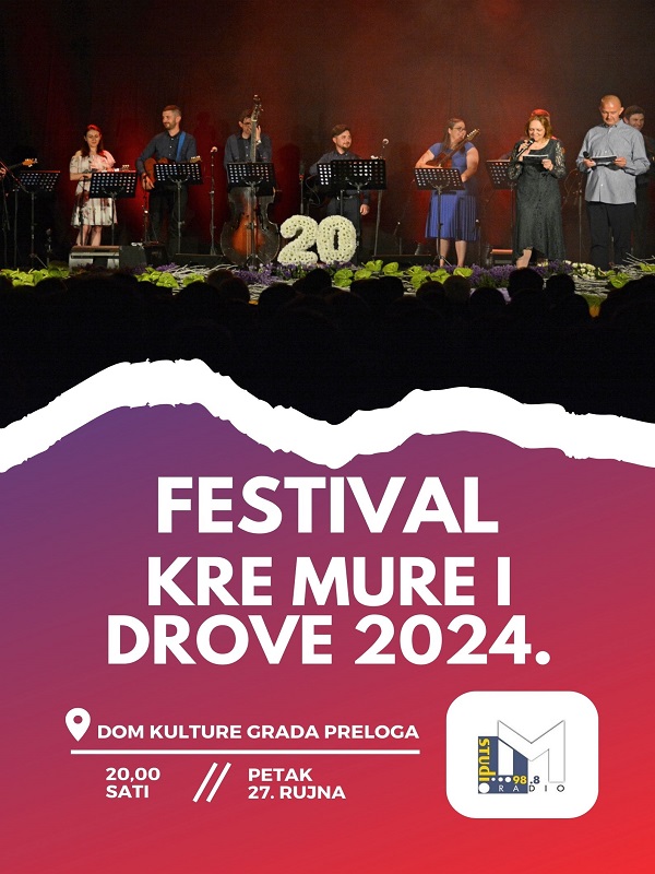 Jedinstvena glazbena večer festivala Kre Mure i Drove, 21. po redu bit će održana ovog petka, 27. rujna s početkom u 20:00 sati u Domu kulture Grada Preloga u organizaciji radija Studio M te pod generalnim pokroviteljstvom Grada Preloga i generalnim sponzorstvom Međimurske županije.