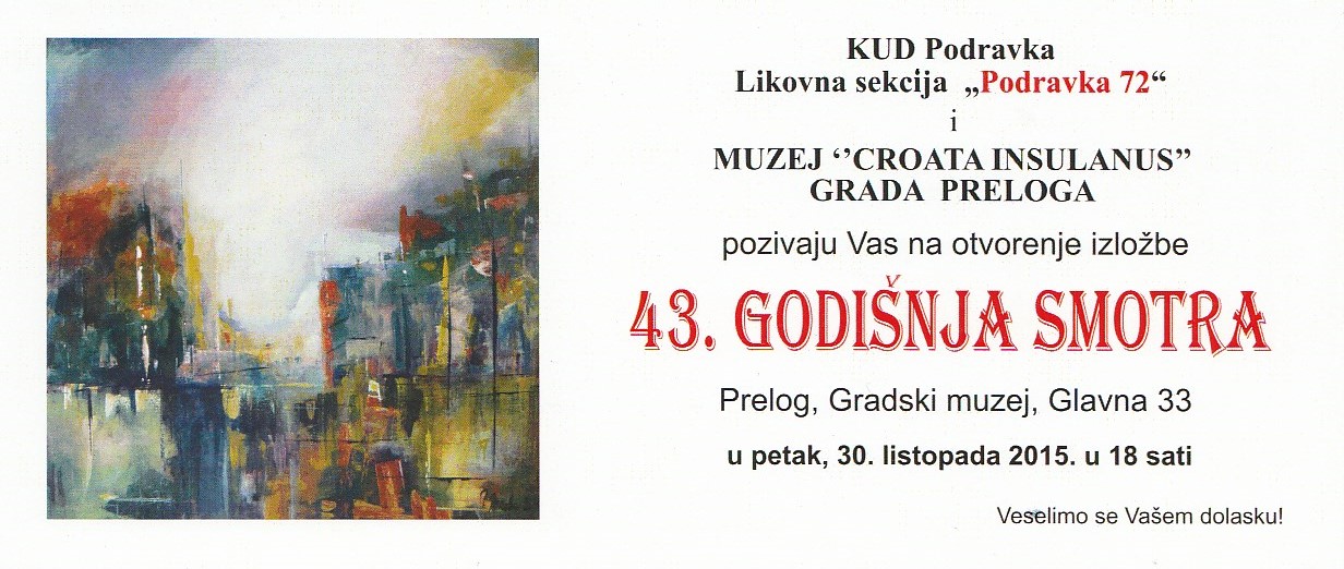Pozivamo Vas na otvorenje izložbe Likovne sekcije „Podravka 72“ u petak (30. listopada 2015.) u 18:00 sati u Muzej Croata insulanus Grada Preloga.