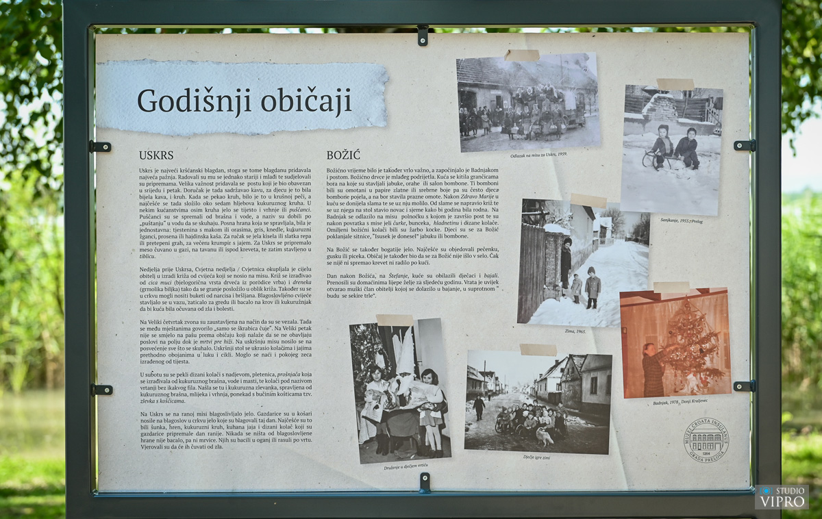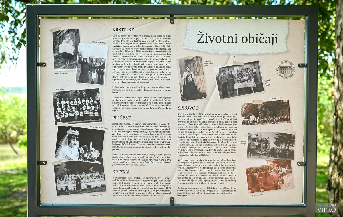 Izložba obuhvaća teme jedinstvenih običaja, rituala i proslava, vjerskih svečanosti, kulinarske tradicije, tradicionalne odjeće te mnoge druge zanimljivosti. Priče kazivača potkrijepljene su fotografijama prikupljenima iz privatnih arhiva, Muzeja Grada Preloga, Topoteke Prelog i Topoteke Međimurje. Autorice izložbe su kustosica Muzeja Grada Preloga Iva Kožnjak i stručna suradnica, prof. povijesti i etnologije Tajana Štefok.