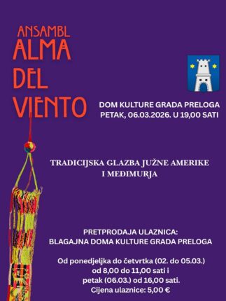 Završeno Od 07.03.26. 00:00 do 07.03.26. 23:00 Ansambl Alma del viento, tradicijska glazba Južne Amerike i Međimurja u Domu kulture Saznajte više