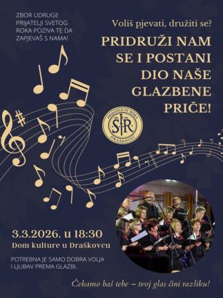 Završeno Od 03.03.26. 00:00 do 03.03.26. 23:00 Postanite dio Mješovitog pjevačkog zbora Udruge “Prijatelji svetog Roka” Saznajte više