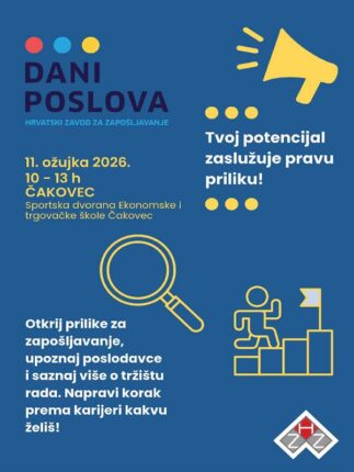 Završeno Od 11.03.26. 00:00 do 11.03.26. 23:00 “Dani poslova” Hrvatskog zavoda za zapošljavanje Područnog ureda Čakovec Saznajte više