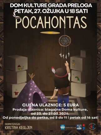 Završeno Od 27.03.26. 00:00 do 27.03.26. 23:00 Predstava “Pocahontas” u Domu kulture Grada Preloga Saznajte više