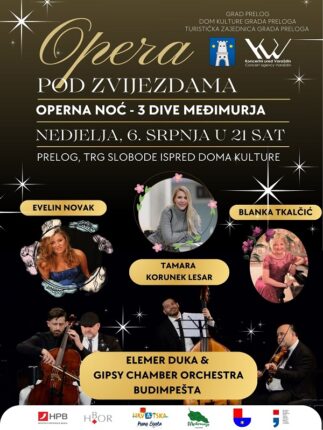 Završeno Od 06.07.25. 08:00 do 06.07.25. 23:00 Operna noć uz tri dive Međimurja i Elemér Duka & Gipsy Chamber Orchestra Saznajte više