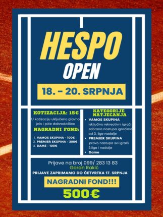Završeno Od 18.07.25. 00:00 do 20.07.25. 00:00 Hespo Open: Otvoreno prvenstvo Tenis kluba Prelog Saznajte više