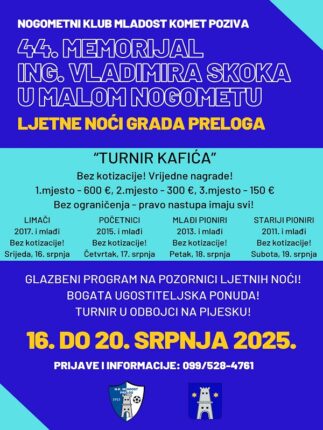 Završeno Od 16.07.25. 00:00 do 20.07.25. 00:00 Četrdeset i četvrte Ljetne noći uz mali nogomet, odbojku na pijesku i bogat zabavni program Saznajte više