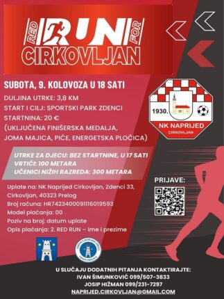 Završeno Od 09.08.25. 00:00 do 09.08.25. 00:00 2. Red Run for Cirkovljan, 9. kolovoza uz Lovreče u Cirkovljanu Saznajte više