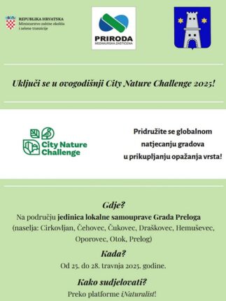 Završeno Od 25.04.25. 00:00 do 28.04.25. 18:00 City Nature Challenge 2025. na području Grada Preloga Saznajte više