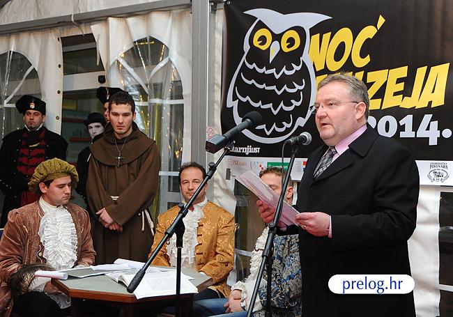 Poželio je svima dobrodošlicu i dobar provod. Na Noći muzeja bio je i predsjednik Gradskog vijeća Goran Gotal, župnik preč. Antun Hoblaj, te brojni uzvanici i posjetitelji. Kroz program je vodio Željko Sokač, a predstavili su se glazbenici, Koncertni ured Varaždin, ulični svirači, kućni teater Škripzikl, Zrinska garda…