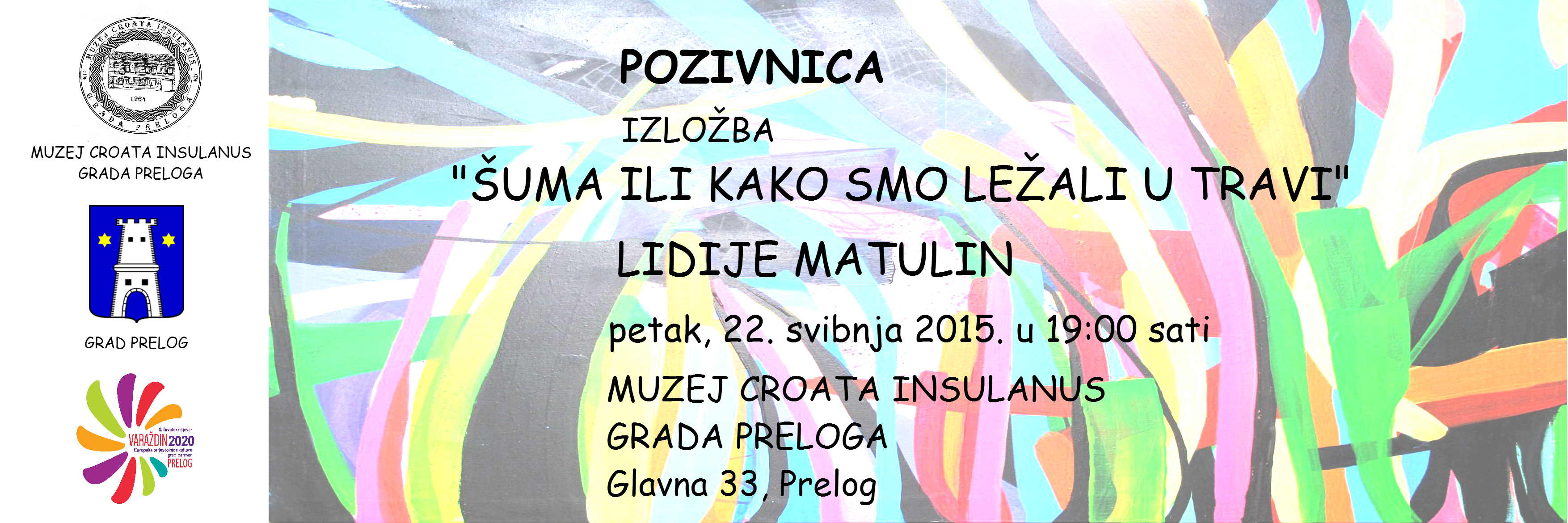 Pozivamo Vas na otvorenje izložbe „Šuma ili kako smo ležali u travi“ akademske slikarice Lidije Matulin u petak (22. svibnja 2015. godine) u Muzej Croata insulanus Grada Preloga u 19:00 sati.