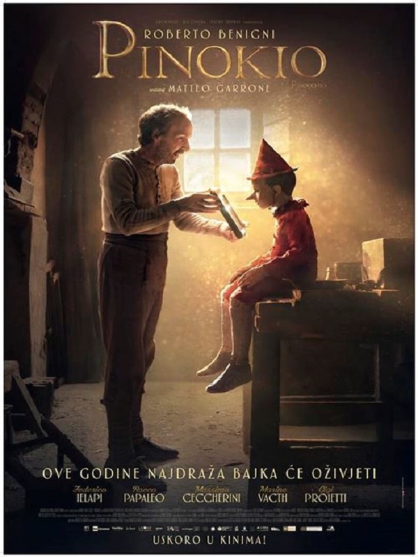 Vjerna filmska adaptacija slavne priče o drvenoj lutki koja će oživjeti uz pomoć siromašnog i usamljenog rezbara drveta. Poput svakog djeteta, Pinokio je znatiželjan o svijetu koji ga okružuje te ga upoznaje sistemom pokušaja i pogreške. Naoružan nezasitnom dječjom hrabrošću, on postaje upravo onakav kakvim je i zamišljen. Autor Collodi napisao je knjigu „Pinokijeve pustolovine“ još krajem 19-og stoljeća, ali njegov lik je danas važniji nego ikada prije – premda se čini da se svijet kreće u suprotnom smjeru. Redatelj Matteo Garrone svijetu Pinokija daruje vizionarsku dimenziju koja, baš poput knjiga, ima široki zamah. Njegov lik Pinokija kreće se na način koji je istovremeno realističan i fantastičan. Radnja je smještena u ruralnoj, bezvremenskoj, ali neodoljivoj Italiji koja odiše prostranstvima, morem i farmama. Gledatelji će sasvim sigurno svaki za sebe pronaći svog omiljenog lika koji se pojavljuje u životu malog Pinokija, a koji ga direktno upoznaje s prirodom, životinjskim carstvom i svijetom mašte.