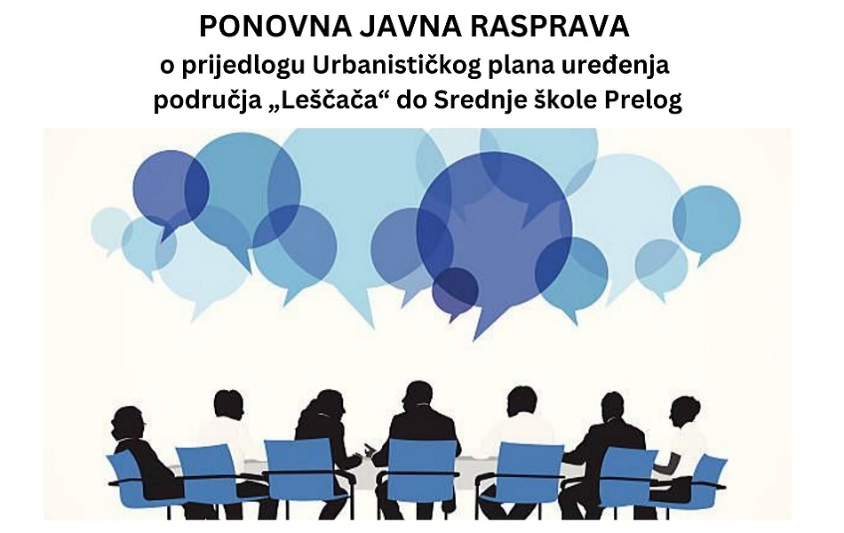 Grad Prelog objavljuje Ponovnu javnu raspravu o prijedlogu Urbanističkog plana uređenja područja „Leščača“ do Srednje škole Prelog. Ponovna javna rasprava će trajati od 02.05.2023. do 15.05.2023. Javni uvid u elaborat za ponovnu javnu raspravu Prijedloga Urbanističkog plana uređenja područja „Leščača“ do Srednje škole Prelog, moći će se izvršiti za vrijeme trajanja Ponovne javne rasprave u prostorijama Grada Preloga, Glavna 35, 40323 Prelog, svakog radnog dana u uredovno radno vrijeme te na mrežnim stranicama Grada Preloga (https://www.prelog.hr/), kao i na mrežnim stranicama stručnog izrađivača (http://urbia.hr/). Javno izlaganje Prijedloga Urbanističkog plana uređenja područja „Leščača“ do Srednje škole Prelog organizirat će se u prostorijama Grada Preloga, Glavna 35, 40323 Prelog dana 09.05.2023. u 13:00 sati.