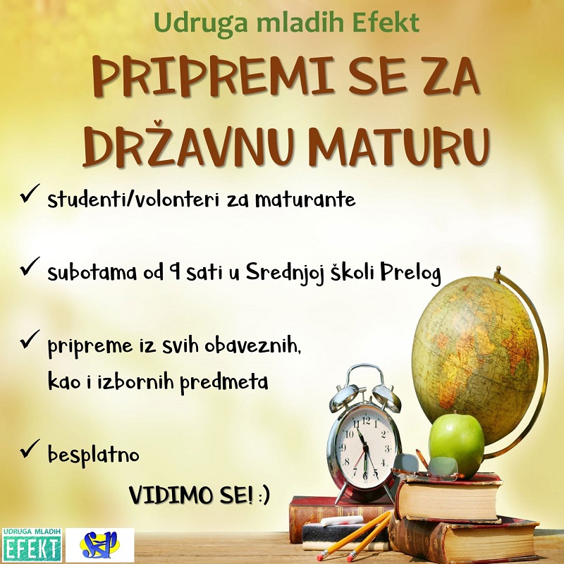Udruga mladih Efekt ponovno organizira besplatne pripreme za maturu, ovaj put iz fizike. Nakon mnogobrojnih nezaboravnih trenutaka, opuštanja, veselja i slavlja posljednjih školskih dana stiglo je vrijeme da se zavrnu rukavi i baci na posao! Intenzivno učenje i ponavljanje relativnog znanja maturantima ovih dana postaje realnost, a kako bi im olakšali i dodatno ih motivirali da se što hrabrije suoče s izazovnim testovima državne mature, volonteri Udruge mladih Efekt rastočit će svoje znanje iz fizike u mlade umove budućih studenata. Zato se pozivaju svi maturante da ne pružaju otpor već da se priključe misaonoj struji rješavanja zadataka iz fizike kako bi premostili razliku potencijala između znanja i neznanja. Val spoznaje širit će se ove subote, 26.5.2018. godine s početkom u 9 sati u prostorijama Srednje škole Prelog.