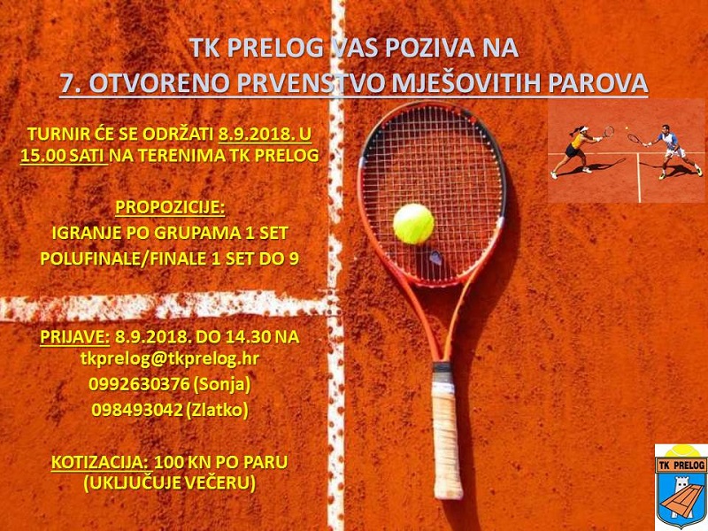 U subotu, 8. rujna 2018. godine, Tenis klub Prelog organizator je tradicionalnog, sedmog po redu Turnira mješovitih parova. Turnir se organizira u svrhu promocije ženskog tenisa, a svake godine okupi se petnaestak mješovitih parova sa područja županija sjeverozapadne Hrvatske. Ukoliko volite tenis i igrate ga, prijavite se i sudjelujte u ovom zanimljivom natjecanju.