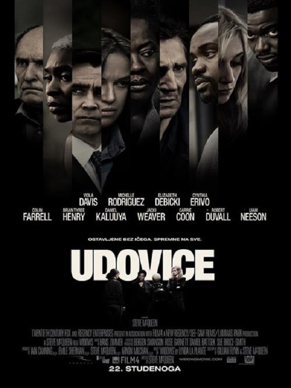 Redatelj Steve McQueen, dobitnik nagrade Oscar za 12 godina ropstva i scenaristica Gillian Flynn, poznata po napetom trileru Nestala, donose moderni ženski triler o kriminalu, korupciji i strasti. Film Udovice je priča o četiri žene koje nemaju ništa zajedničko osim dugova koji su ostali iza kriminalnih aktivnosti njihovih muževa. Radnja je smještena u današnjem modernom, ali kriminalom dobro potresenom Chicagu, kada Veronica (dobitnica nagrade Oscar Viola Davis), Alice (Debicki), Linda (Rodriguez) i Belle (Erivo) uzmu stvari u svoje ruke. Udovice će skovati opasne planove kako bi otplatile gangsterske dugove svojih pokojnih muževa.