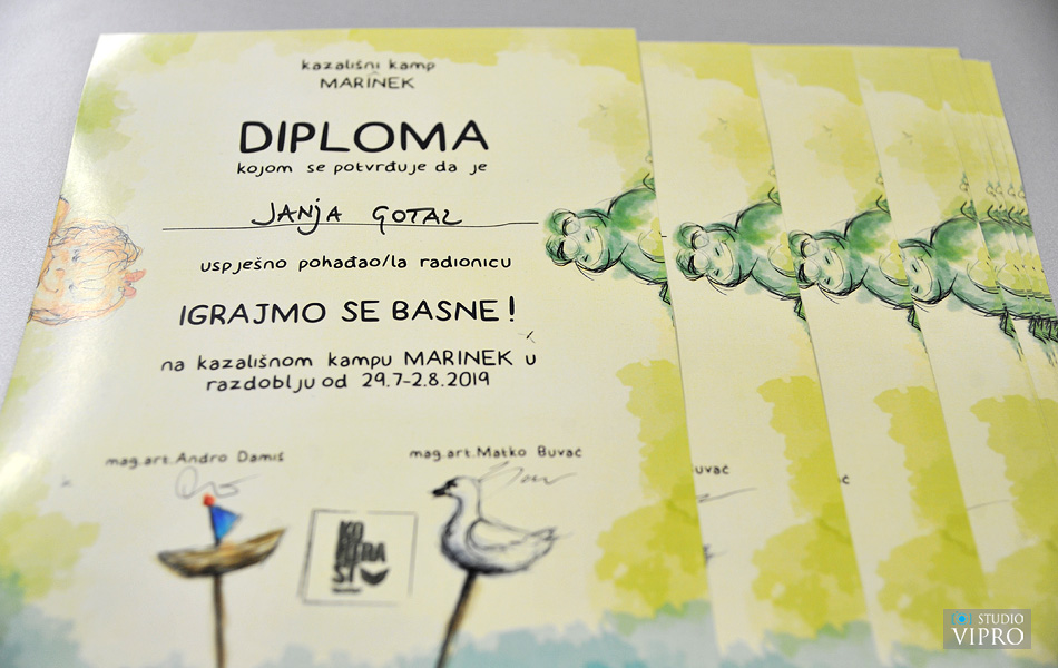 Proteklih dana, popularnom Marinom kraj Preloga, orio je dječji zamor i smijeh. Naime, tamo se, od 29. srpnja do 2. kolovoza, održavao kazališni kamp „Marinek“, u organizaciji Muzeja Croata insulanus Grada Preloga. Kazališni kamp realiziran je u suradnji s Kontrast teatrom, čiji su osnivači prvi međimurski magistri glume i lutkarstva: Matko Buvač i Andro Damiš te uz potporu Ministarstva kulture. Kazališne radionice bile su podijeljene u dva dijela, s obzirom na dob polaznika. “Lutkaonica” je radionica koja je okupila polaznike od prvog do četvrtog razreda osnovne škole, a na kojoj su se polaznici pobliže upoznali sa svijetom lutkarstva kroz pregršt lutkarskih igara, izradili vlastite lutke (ručne i štapne) i postali dio lutkarske čarolije. „Igramo se basne“ je bila radionica koja je okupila polaznike od petog do osmog razreda osnovne škole. Radionica se sastojala od raznih dramskih igara, improvizacija kroz koje su polaznici upoznali osnove glumačke igre, stvarajući uvid u svijet kazališta. Posljednji dan radionice dvadeset polaznika pred svojim obiteljima izveli su predstave koje su uvježbali tokom kampa. Kazališni kamp je završio podjelom diploma svim polaznicima.