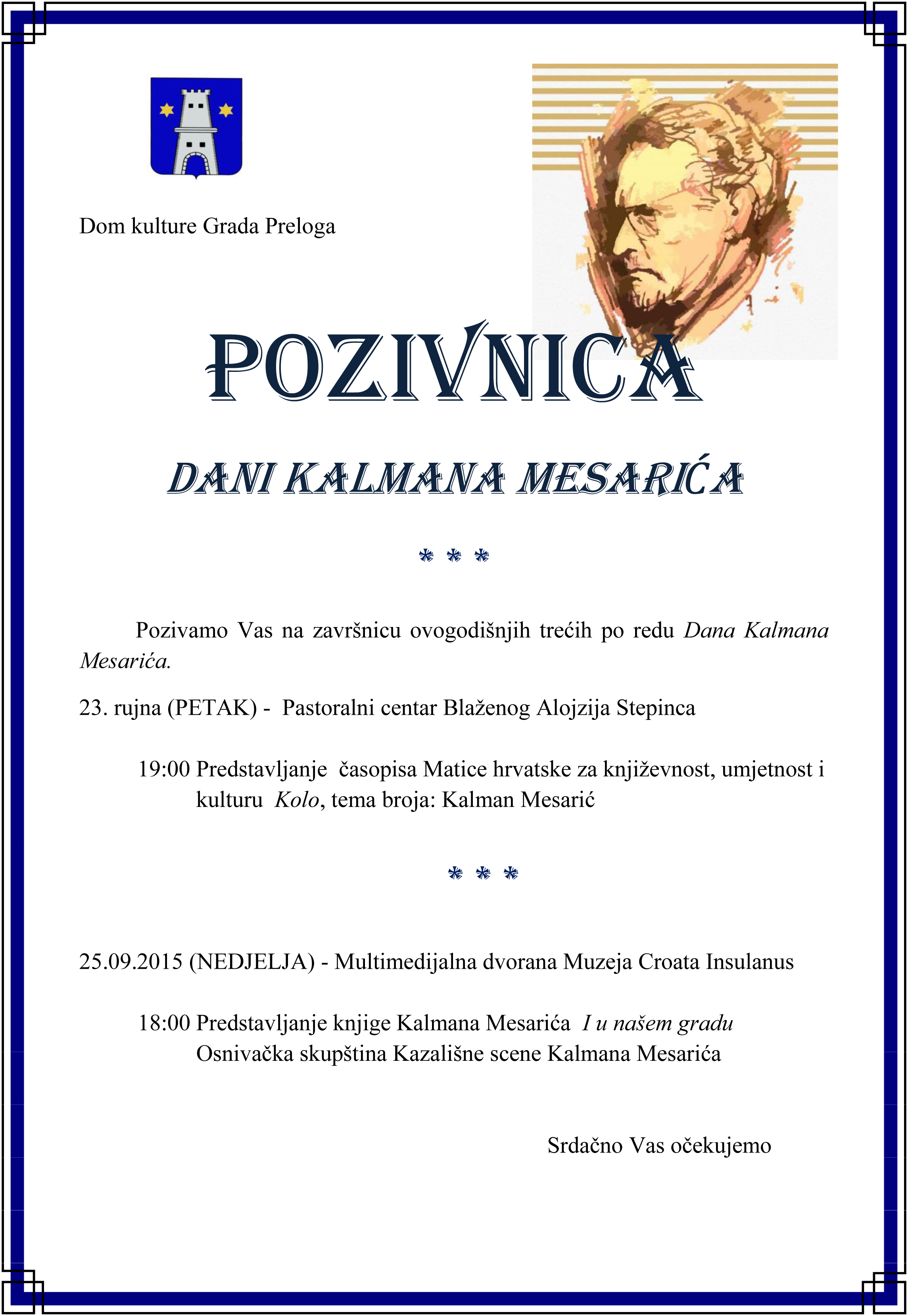 Pozivamo Vas na završnicu ovogodišnjih trećih po redu Dana Kalmana Mesarića.